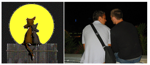 fórum að versla áðan í carrefour (uppáhalds búðinni okkar) og í miðri verslunarferð áttuðum við okkur á því að við vorum bara búin að kaupa okkur vökva! 30 lítrar takk fyrir, en við ætlum ekki að segja hversu mikið af því var áfengt, það er leyndó ;) ákváðum samt að kaupa okkur 2 pizzur (það fylgdi nebbla 2 l. kók með) gátum ekki borið þetta allt heim þannig að við tókum með innkaupakerruna og hún er núna inni á gangi hjá okkur ... fyrir utan stigaganginn okkar liggja ca. 10 kerrur núna, en þetta er víst ekki vinsælt að skilja svona eftir (við eigum enga af þeim), en hvað getur maður svo sem annað gert en að haga sér eins og hinir ... (okkar er á leiðinni í safnið ... hehe)