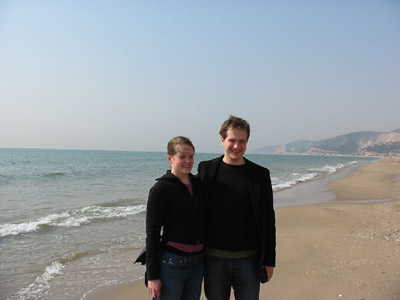 Tvö sjúskuð, nývöknuð eftir partýið heima hjá Óla og Lindu, á ströndinni fyrir utan