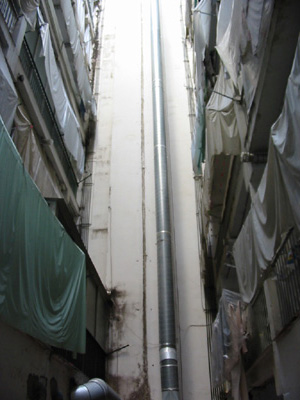Það er gat ("hola") inni í blokkinni miðri og fólk notar það til að þurrka fötin sín. Svona er þetta í öllum blokkum hér sem við höfum séð.