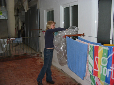 Hannele (Finninn) hengir út þvott þarna í "holunni"