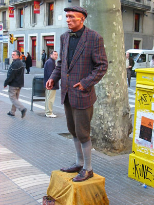 Ein af mörgum lifandi styttum sem hreyfast ef þeim er gefinn peningur
